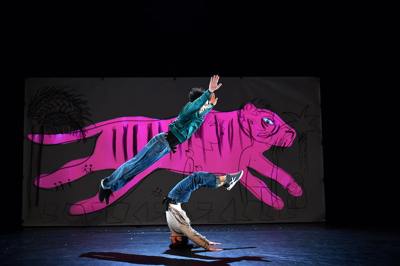 Dans cette création, il y a les mots d’Aurélie Namur, les jeux chorégraphiques et acrobatiques de Florence Bernad et le dessin d’une grande fresque. Chaque élément révèle au fil du spectacle le passé de ce garçon et le parcours de ce tigre mystérieux. Je suis tigre est une histoire d’amitié, de générosité et de solidarité.