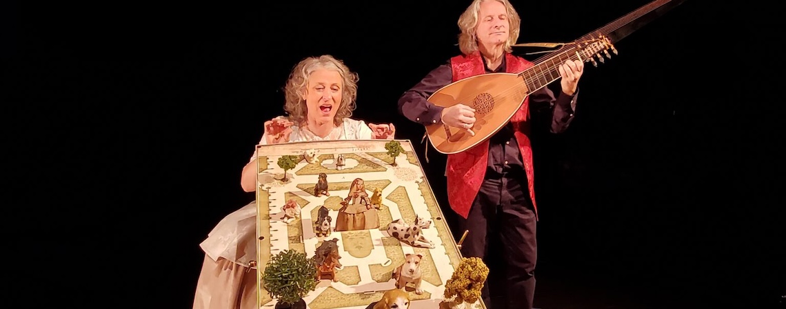 « Les Ménines « de Vélasquez est un tableau universel et une source d’inspiration pour de si nombreux artistes depuis plus de trois siècles. On y voit l’infante d’Espagne, âgée de 6 ans, entourée de ses suivantes, les Ménines, ainsi que de quelques autres personnages. Sur la partie gauche se trouve le peintre Velasquez lui-même en train de travailler à une grande toile. Mais que regardent tous ces personnages qui font face aux spectateurs ? Ceux qu’on devine dans le miroir ? Sur ces reflets et jeux d’illusions se construit le spectacle où images, musique et objets tricotent un détournement fantaisiste du tableau. L’infante Marguerite, petite fille de 6 ans vouée à un destin hors du commun, prend vie et raconte ce qui se trame autour d’elle… Et tout le monde en prend pour son grade ! La scène devient le terrain de jeu où l’on passe de la peinture mythique à la représentation théâtrale en trois dimensions. Saynètes en miniature ou taille réelle s’enchaînent et se répondent aux sons de la guitare baroque et de l’archiluth.